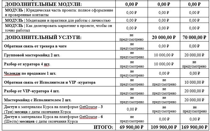 2.2. Описание Курсов, полный перечень Услуг Исполнителя, их стоимость, тематика, содержание, сроки и порядок их оказания размещены на Сайте в сети Интернет, расположенному по адресу:https://valyakhilenko.ru, включая все его разделы, страницы (поддомены).
